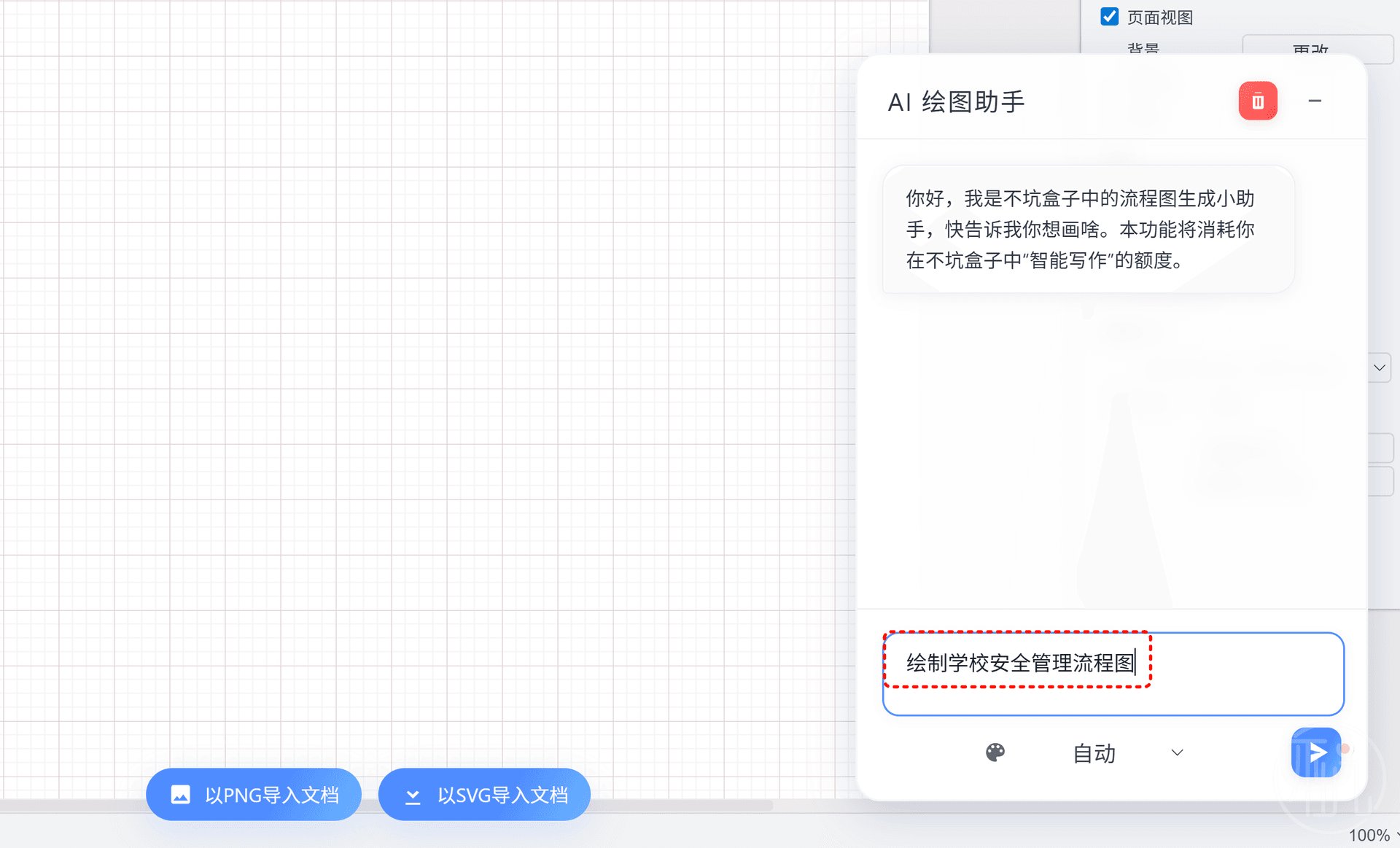 你可以在右下角的对话窗口中,打上想绘制的流程图,AI会帮你实时绘制。