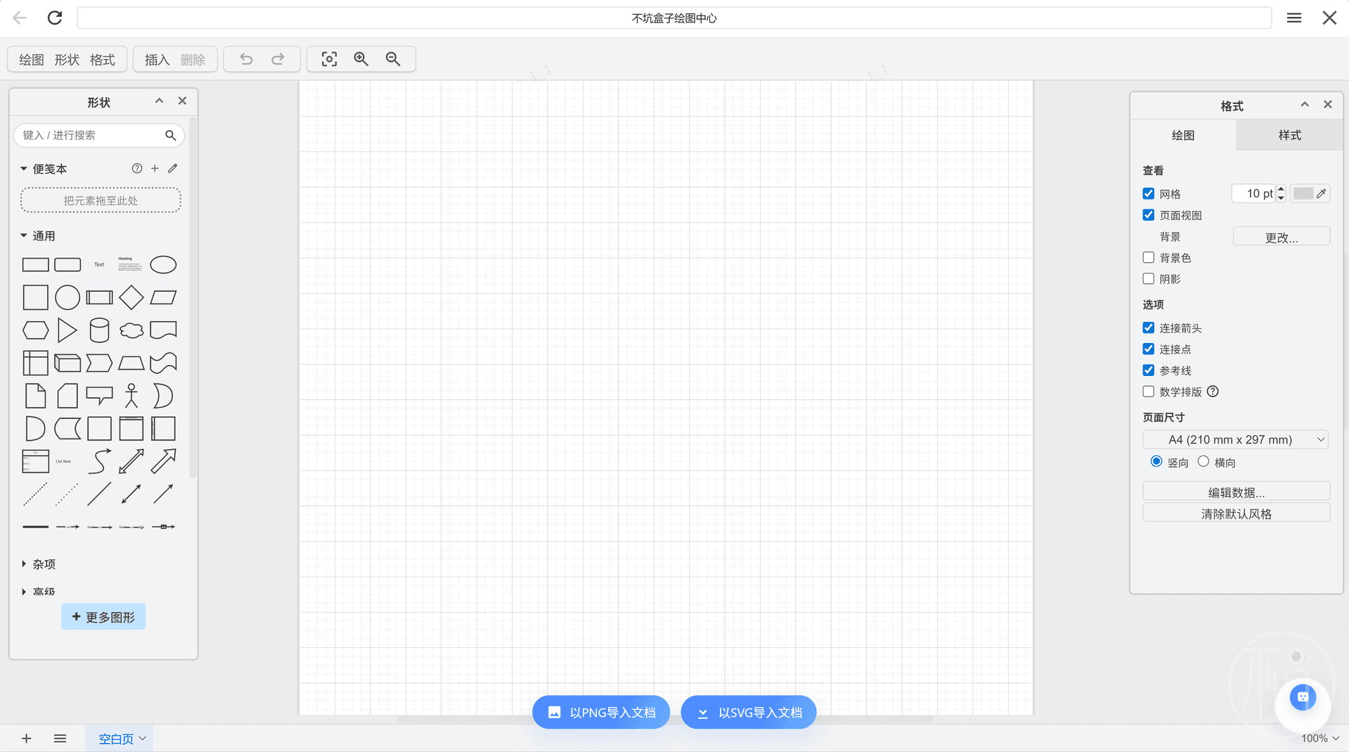 接下来,你就在这个界面中尽情绘制你的流程图。Draw是非常专业的工具,如果你不会使用的话,可能需要专业去学习。