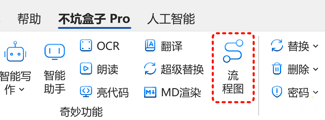 当你在文档中不选中任何流程图,直接点击界面上的“流程图”功能按钮。