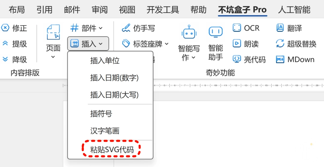 本功能可以把剪贴版上的复制的SVG代码一键粘贴到Word文档中。