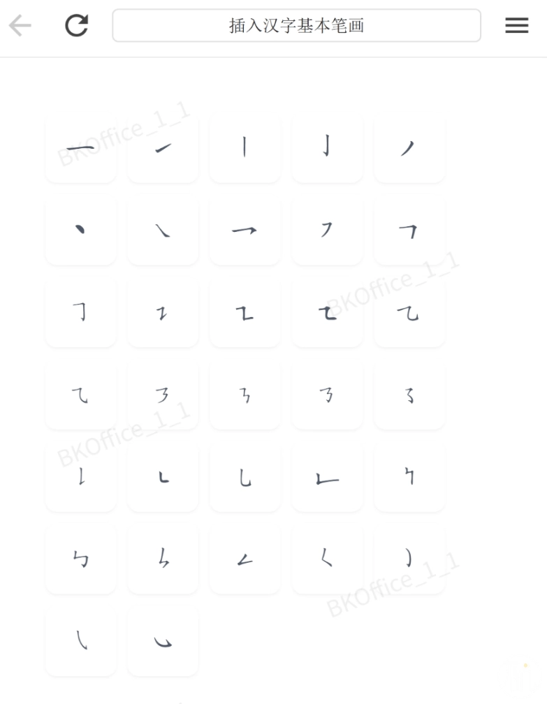 本功能可以一键在Word中插入汉字的32个基本笔画。